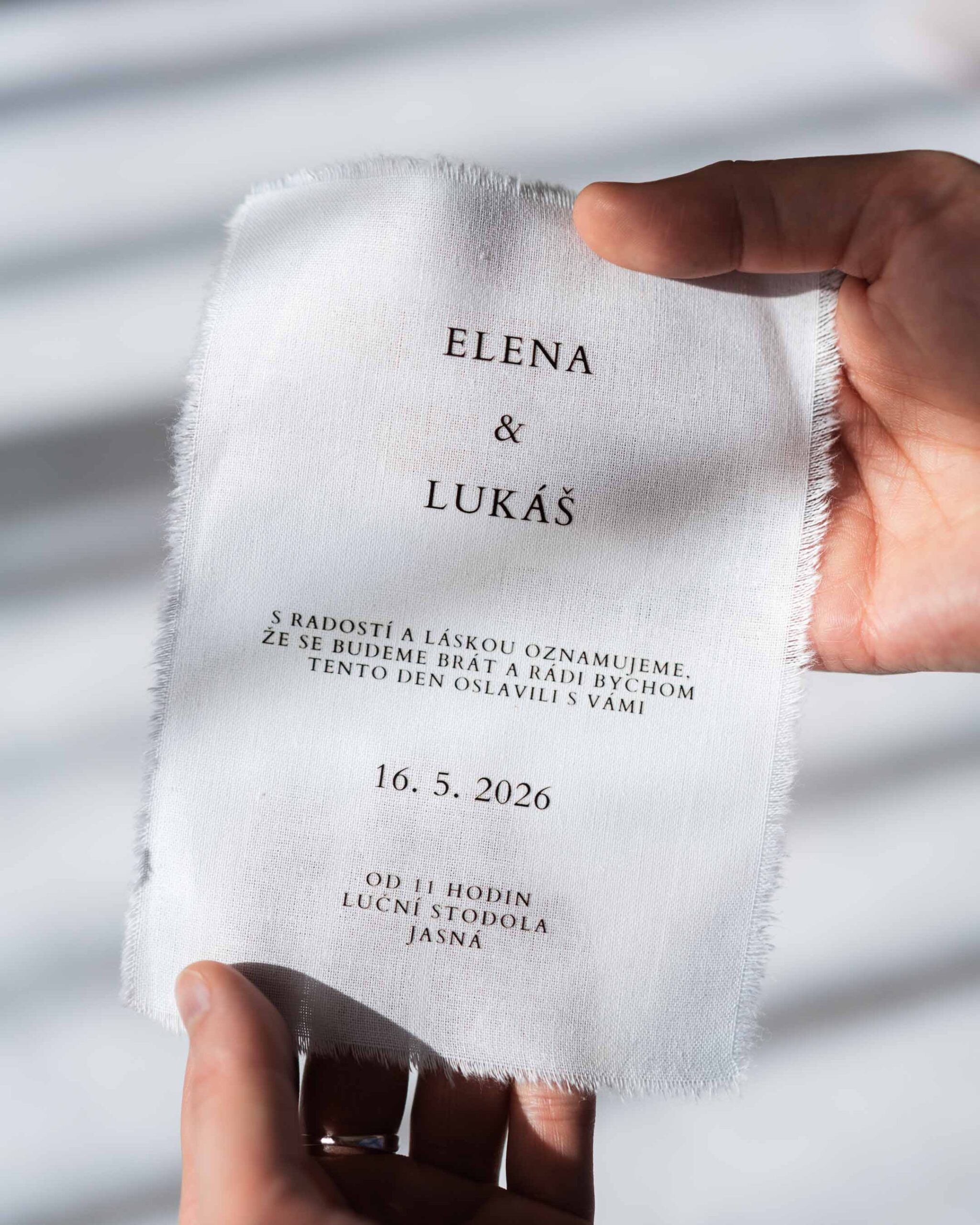 Látkové svatební oznámení Lovelin