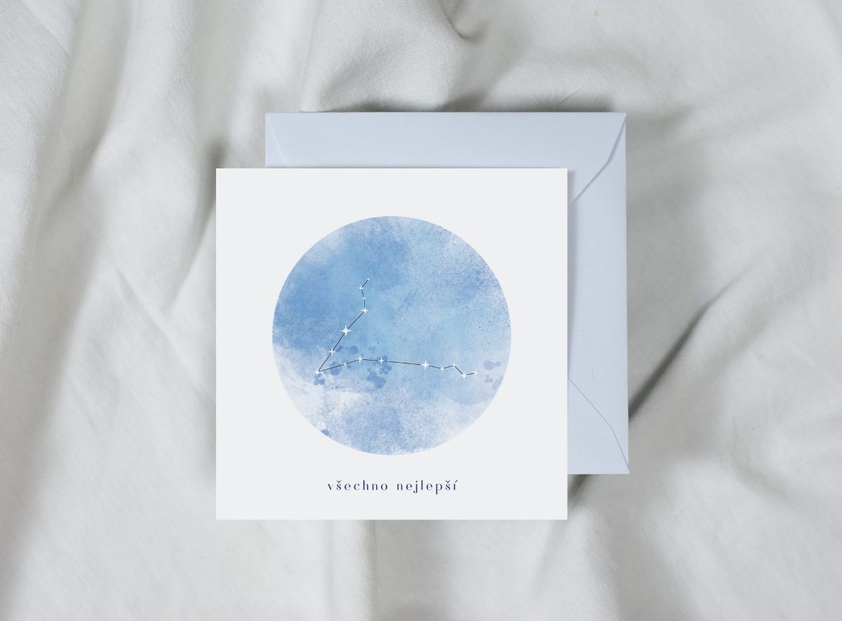 Narozeninové přání modrá obloha se znamením zvěrokruhu (ryby)