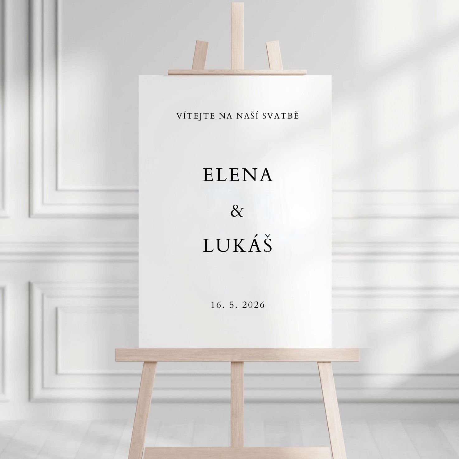 Jednoduchý svatební uvítací tabule v designu kolekce Minimalism, která doplní váš svatební den.
